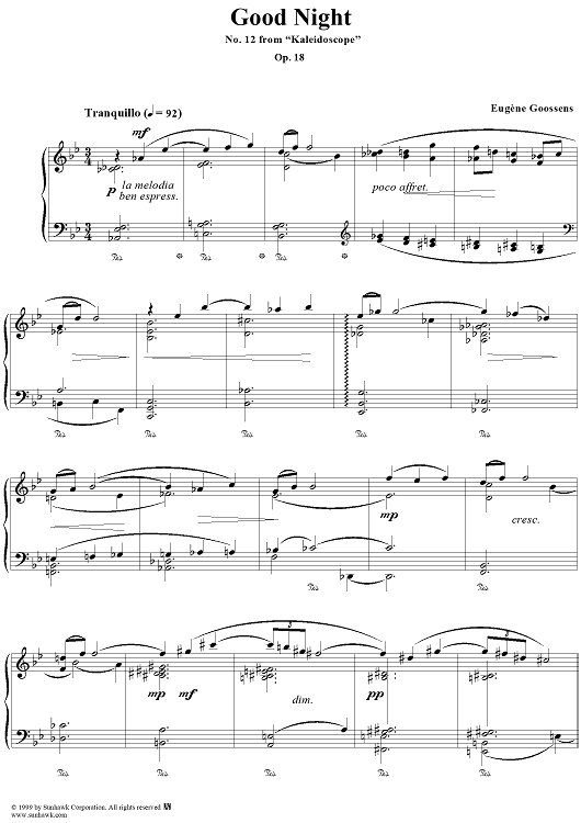 Digital Sheet Music for Good Night - No. 12 from "Kaleidoscope" Op. 18 by Eugene Goossens scored for Piano Solo; id:268272