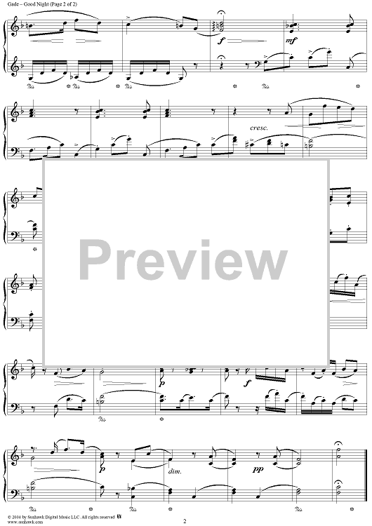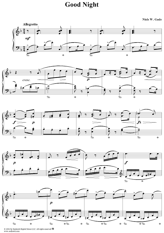 Digital Sheet Music for Good Night by Niels Gade scored for Piano Solo; id:296703