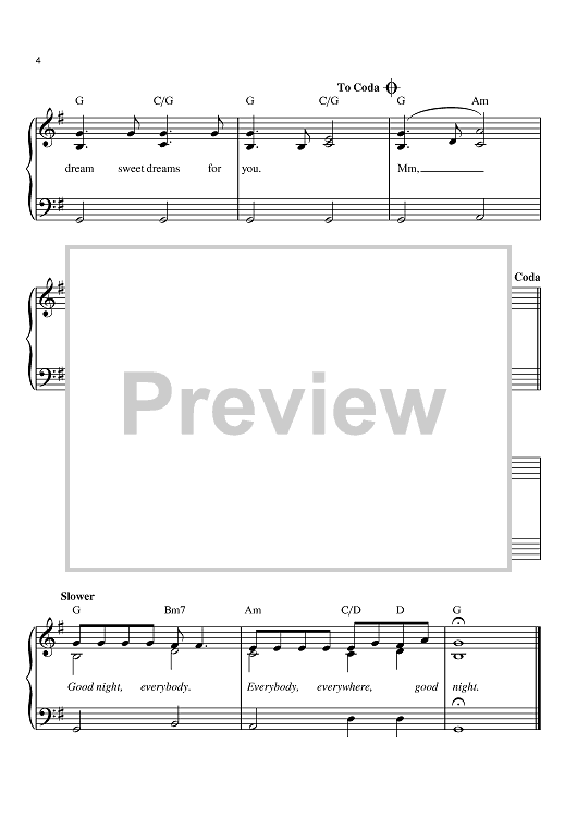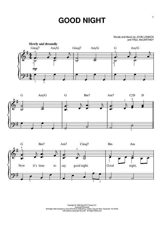 Digital Sheet Music for Good Night by Paul McCartney, The Beatles, John Lennon scored for Easy Piano; id:390460