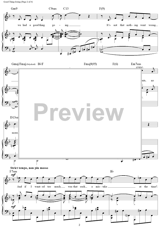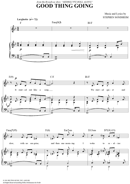 Digital Sheet Music for Good Thing Going by Stephen Sondheim scored for Piano/Vocal; id:258935