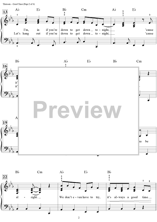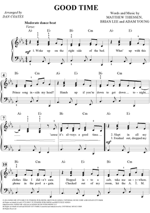 Digital Sheet Music for Good Time by Dan Coates, Matt Thiessen, Owl City, Adam Young, Brian Lee, Carly Rae Jepsen scored for Easy Piano/Vocal/Chords; id:440095