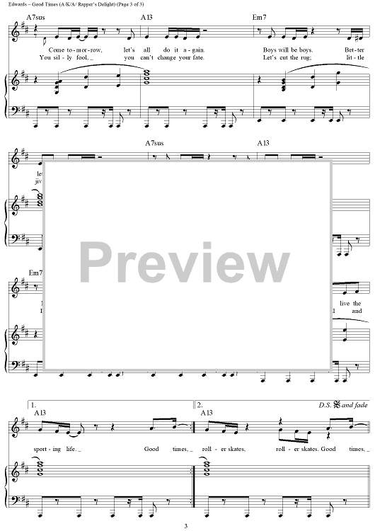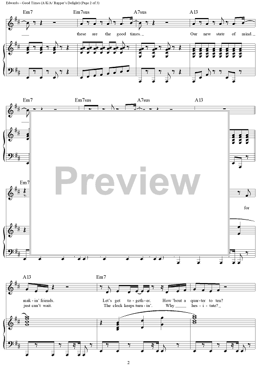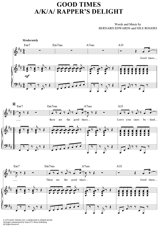 Digital Sheet Music for Good Times (A/K/A/ Rapper's Delight) by Bernard Edwards, Nile Rogers, Chic scored for Piano/Vocal/Chords; id:361825