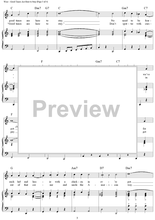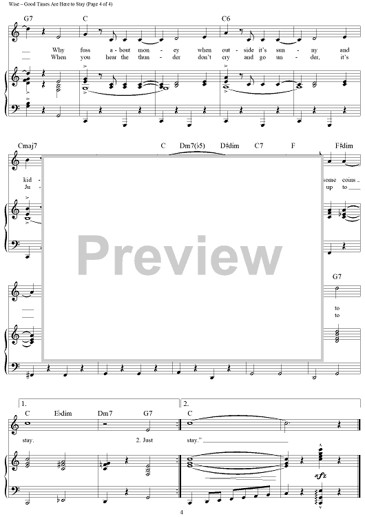 Digital Sheet Music for Good Times Are Here To Stay by Jim Wise, George Haimsohn scored for Piano/Vocal/Chords; id:312605