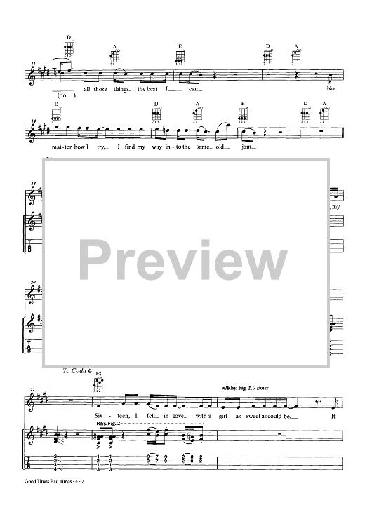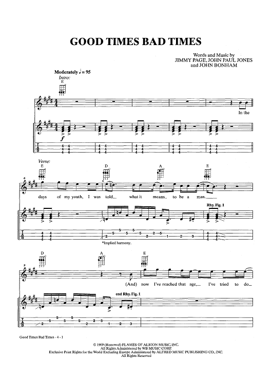 "Good Times Bad Times" Sheet Music by Led Zeppelin