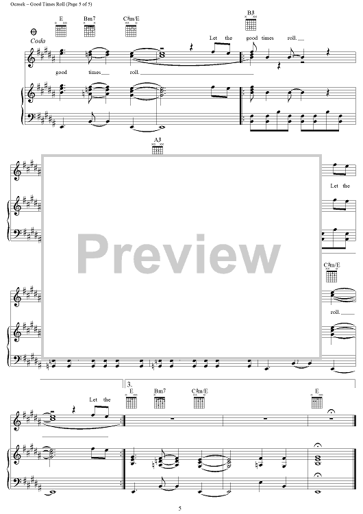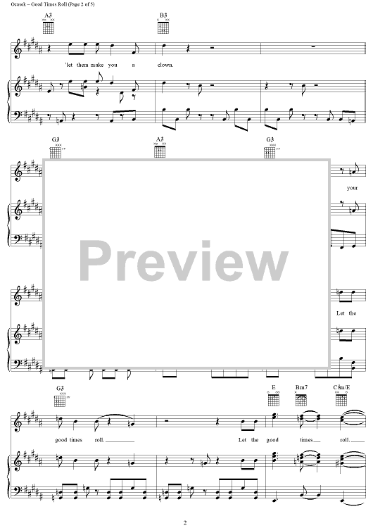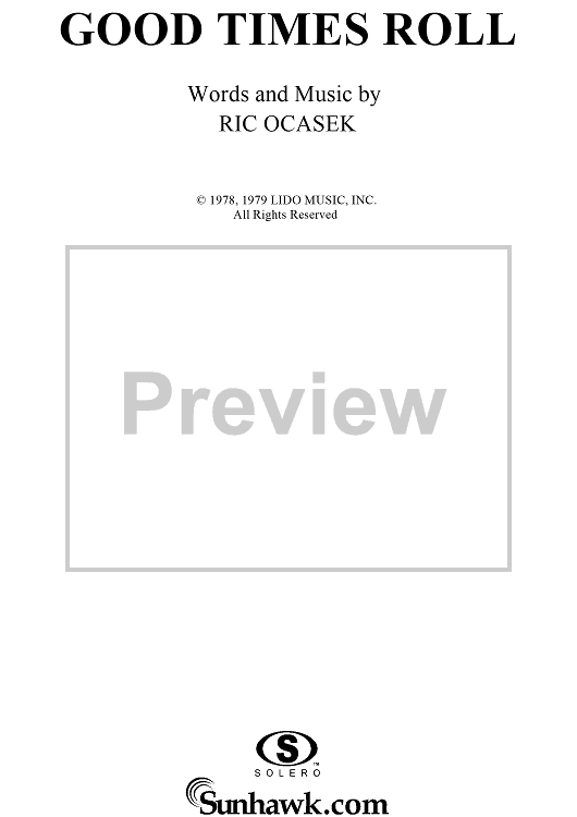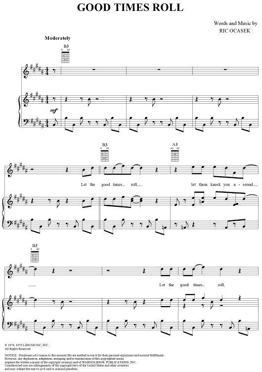 Digital Sheet Music for Good Times Roll by Ric Ocasek, The Cars scored for Piano/Vocal/Chords; id:253754
