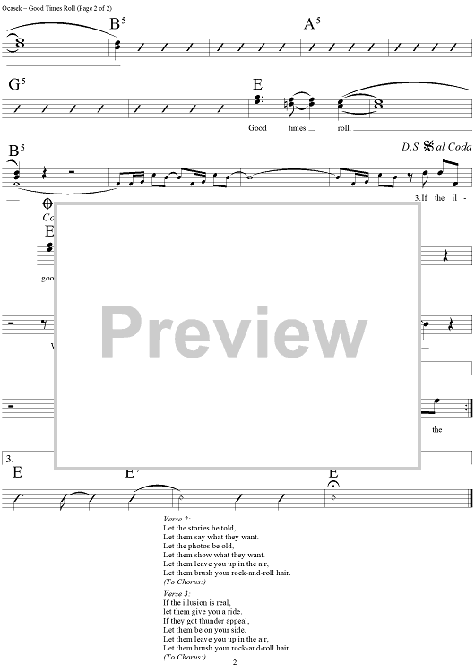 Digital Sheet Music for Good Times Roll by Ric Ocasek, The Cars scored for Lead Sheet; id:293929