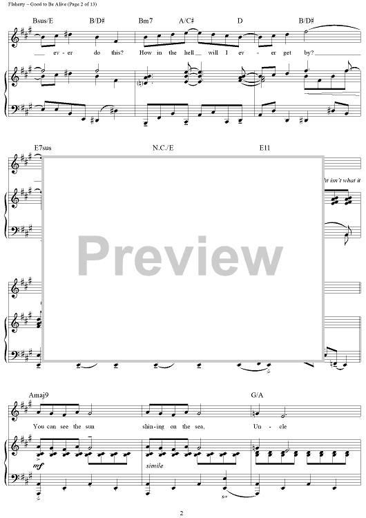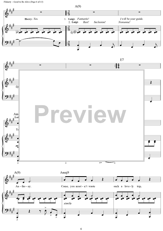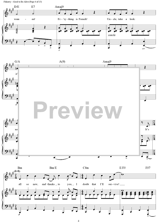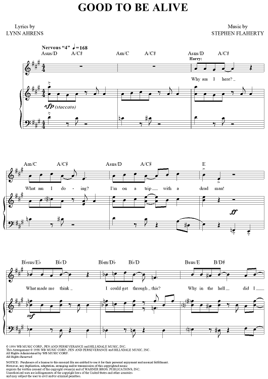 Digital Sheet Music for Good To Be Alive by Stephen Flaherty, Lynn Ahrens scored for Piano/Vocal/Chords; id:311578