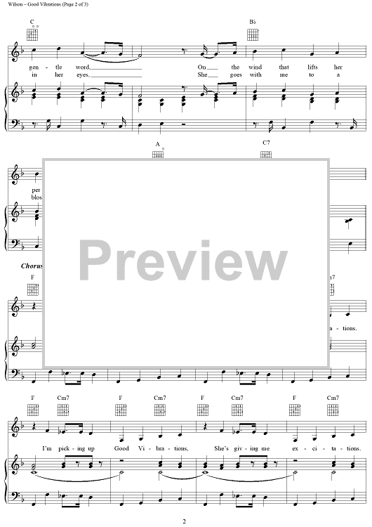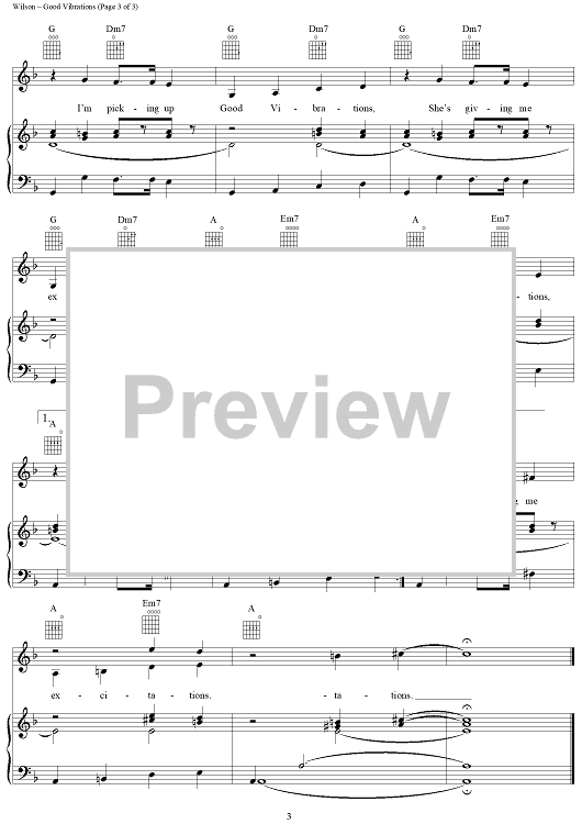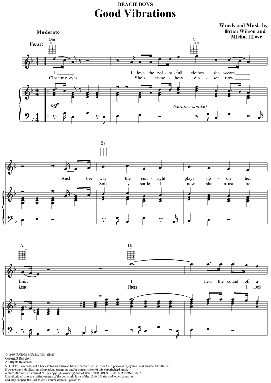 Digital Sheet Music for Good Vibrations by Brian Wilson, The Beach Boys, Mike Love scored for Piano/Vocal/Chords; id:111065