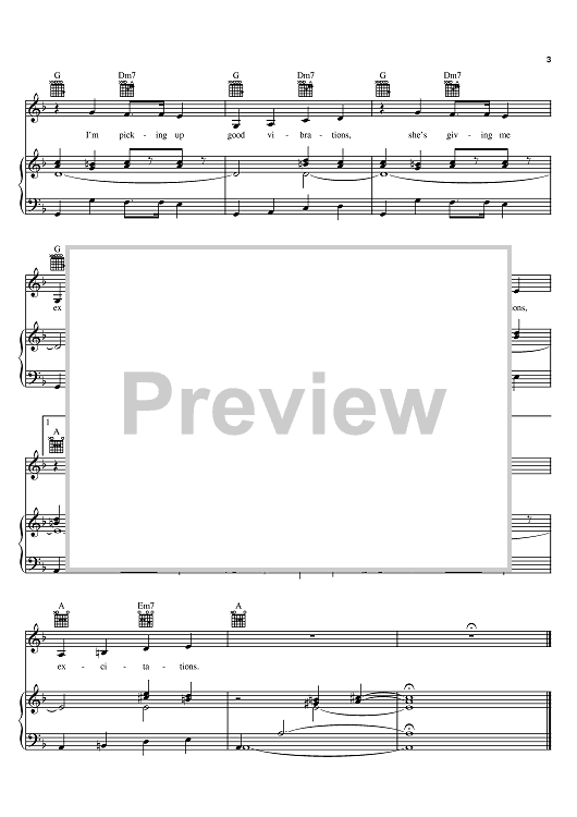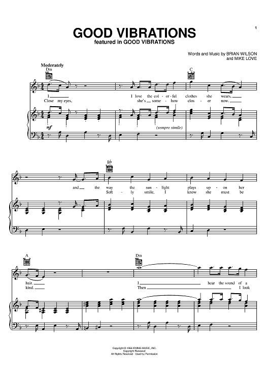 Digital Sheet Music for Good Vibrations by Brian Wilson, The Beach Boys, Mike Love scored for Piano/Vocal/Chords; id:368522