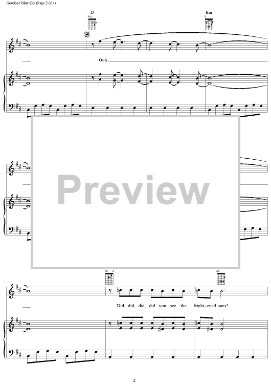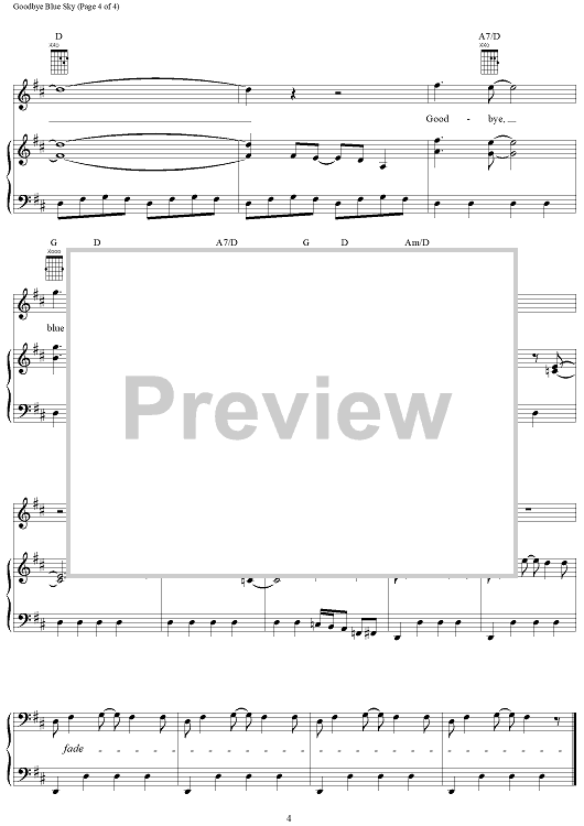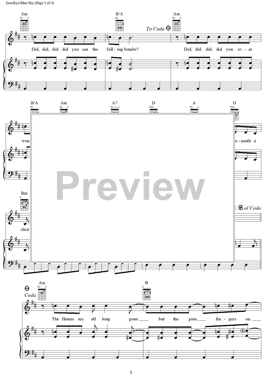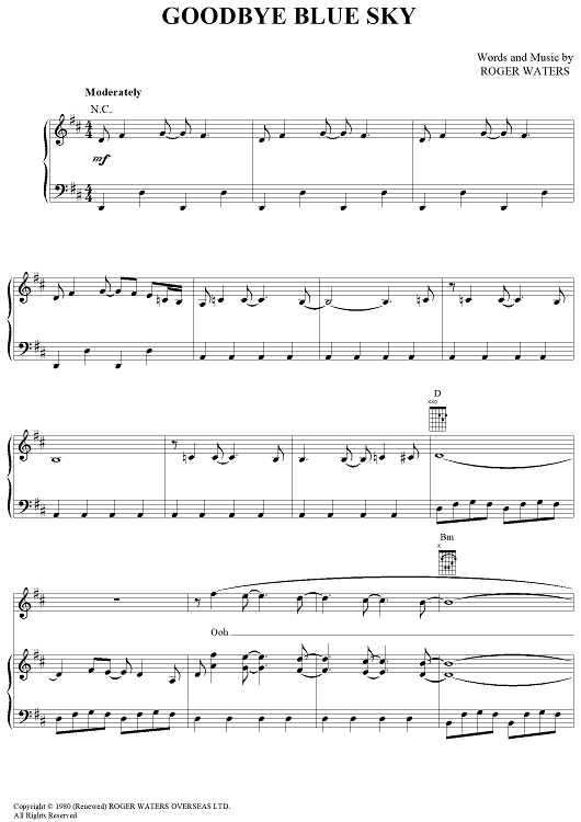 Digital Sheet Music for Goodbye Blue Sky by Pink Floyd, Roger Waters scored for Piano/Vocal/Chords; id:284287
