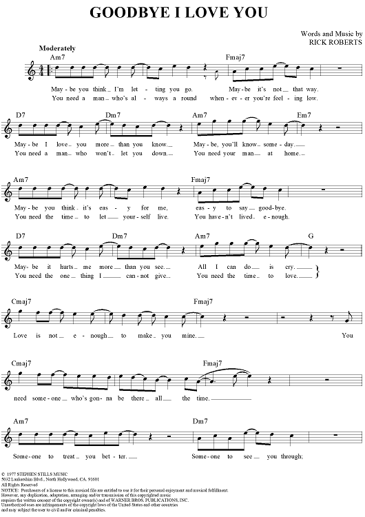Digital Sheet Music for Goodbye I Love You by Rick Roberts, Firefall scored for Lead Sheet; id:255419