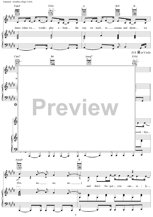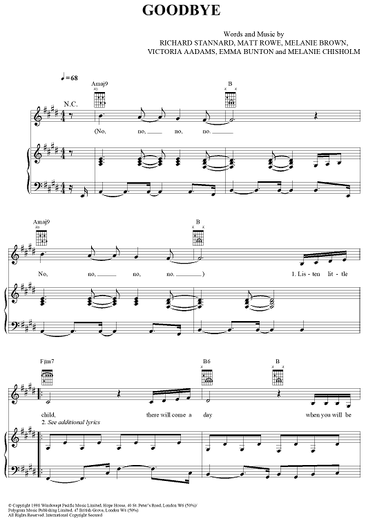 Digital Sheet Music for Goodbye by Emma Bunton, Melanie Brown, Mel C, Matt Rowe, Richard Stannard, Victoria Aadams, Spice Girls scored for Piano/Vocal/Chords; id:259197
