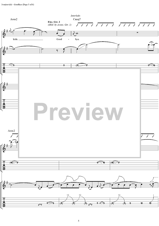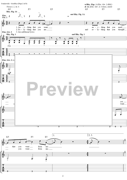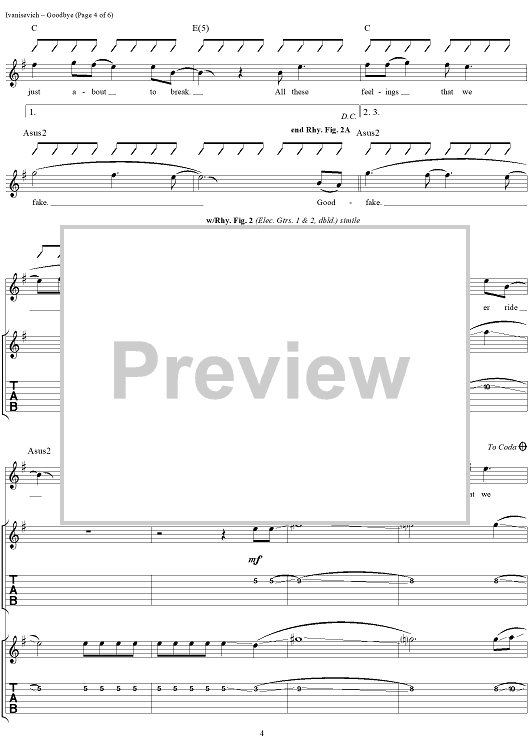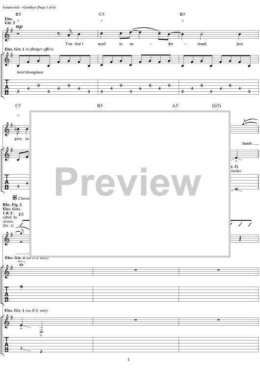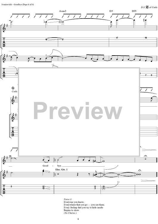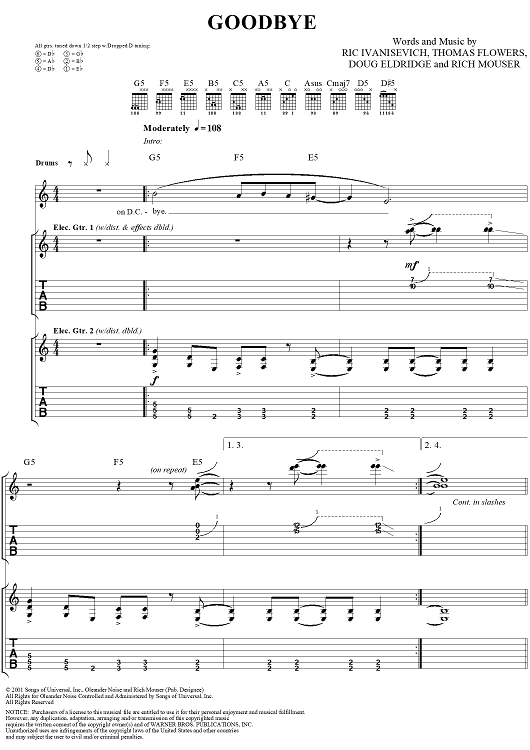 Digital Sheet Music for Goodbye by Oleander, Ric Ivanisevich, Thomas Flowers, Doug Eldridge, Rich Mouser scored for Guitar Tab/Vocal; id:285307