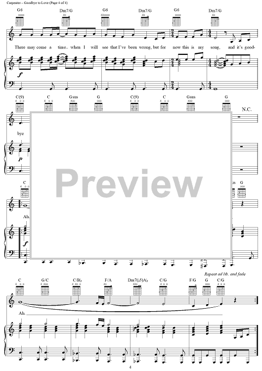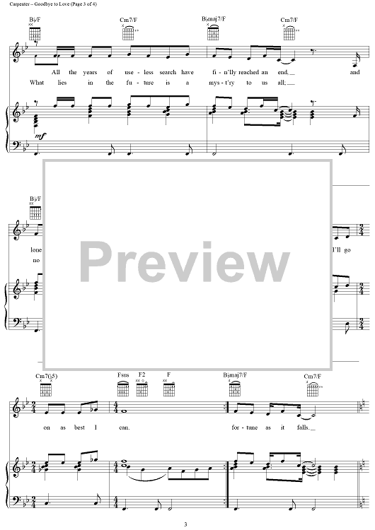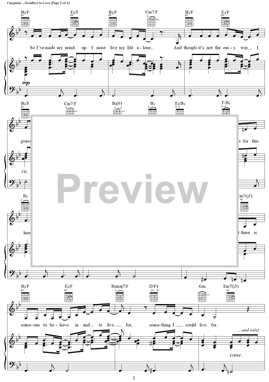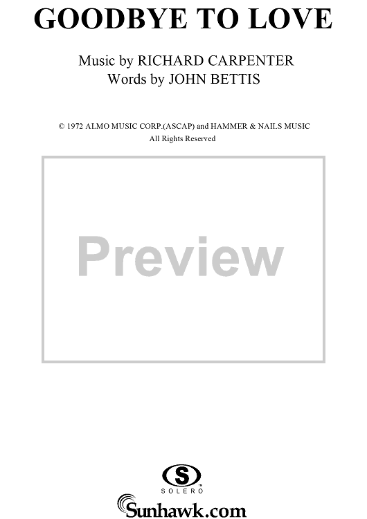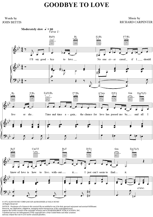 Digital Sheet Music for Goodbye to Love by The Carpenters, Richard Carpenter, John Bettis scored for Piano/Vocal/Chords; id:116053