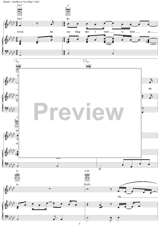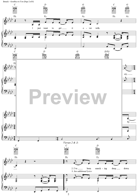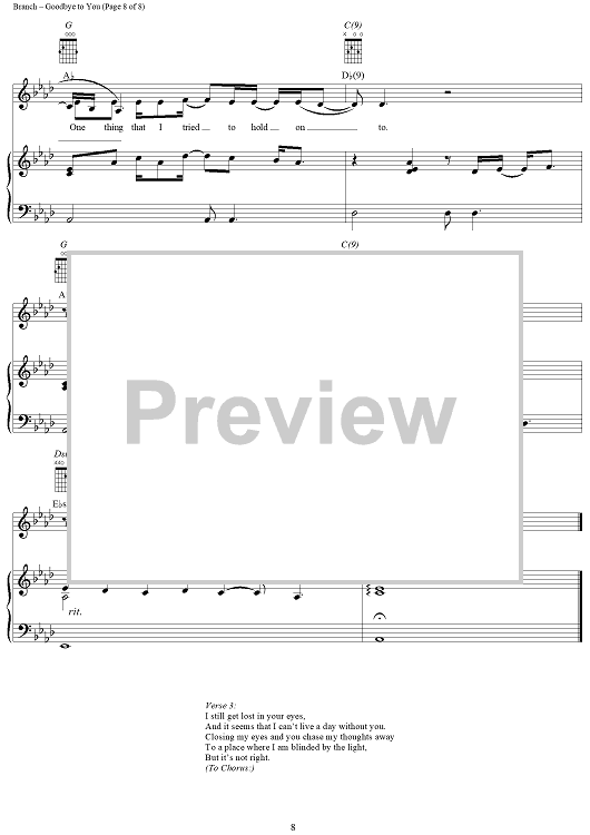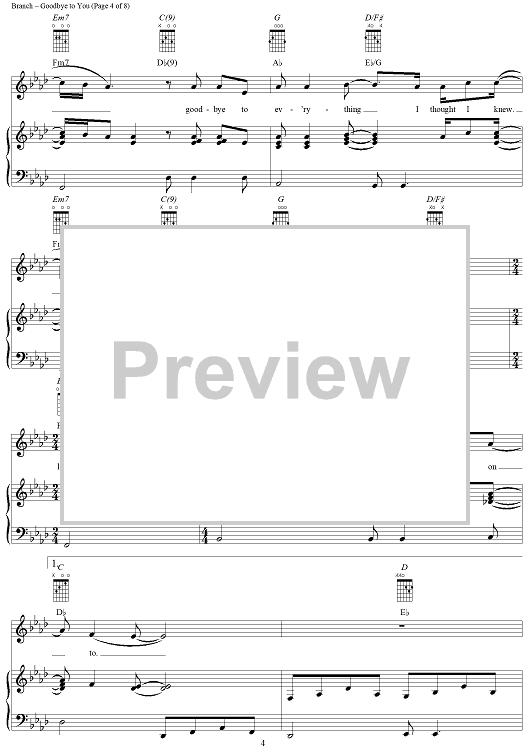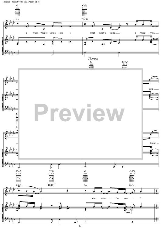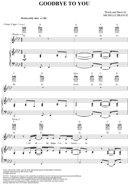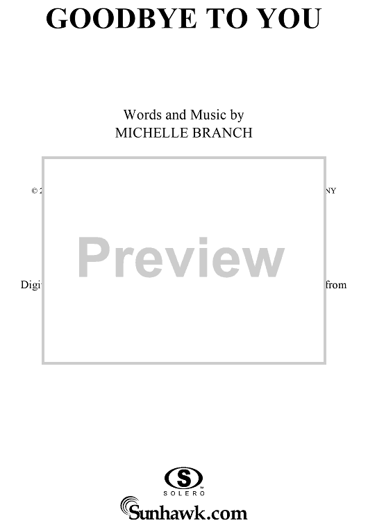 Digital Sheet Music for Goodbye to You by Michelle Branch scored for Piano/Vocal/Chords; id:293387