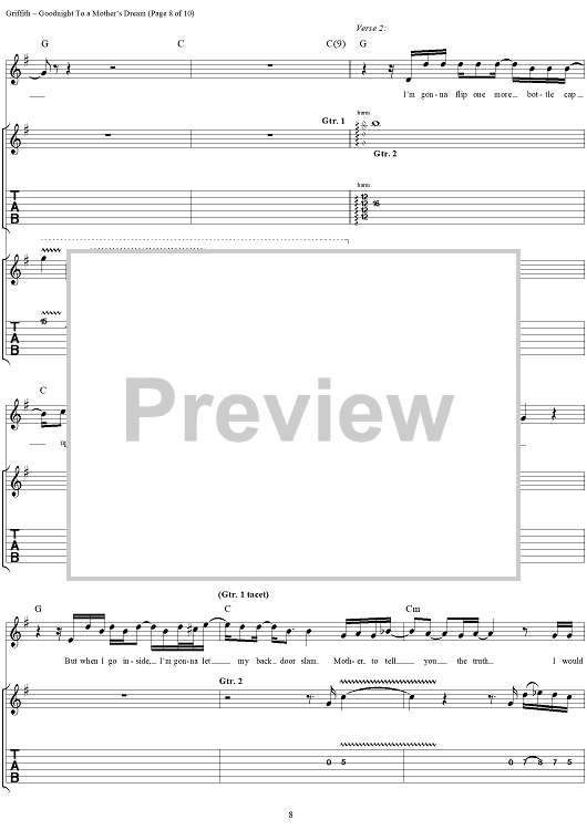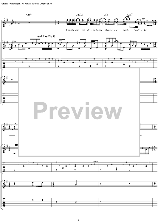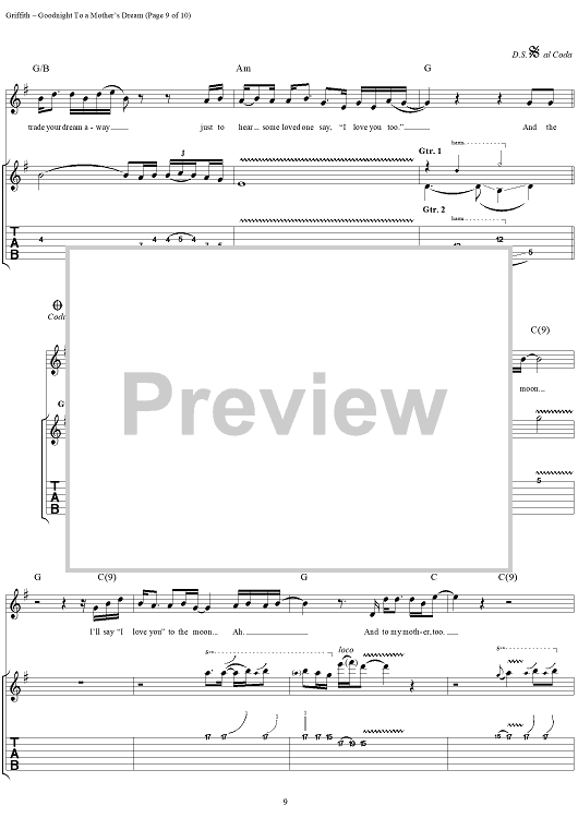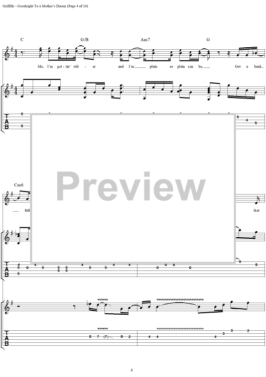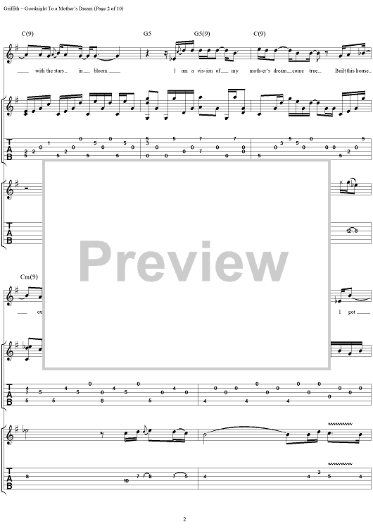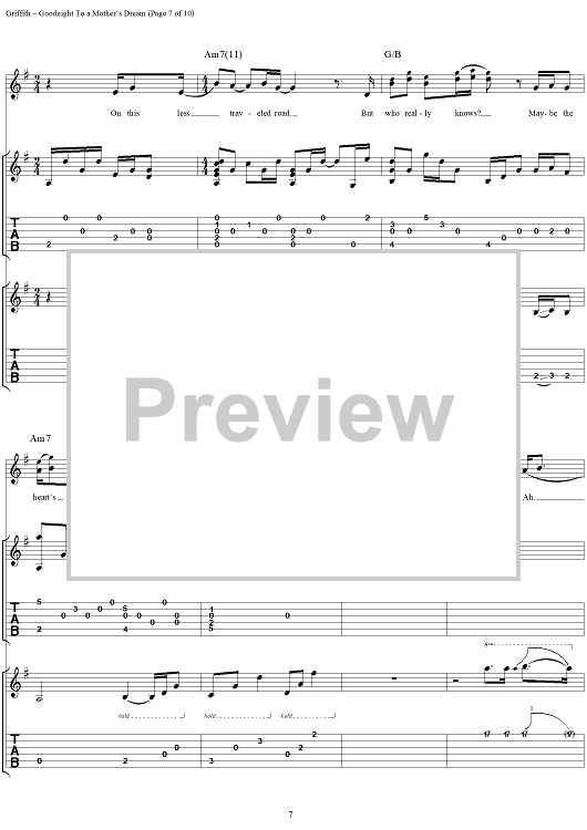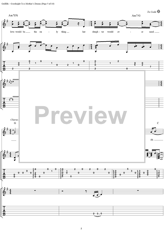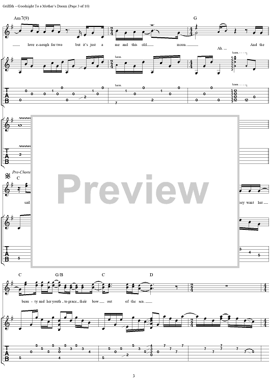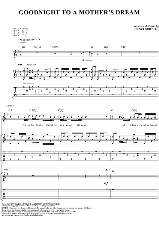 Digital Sheet Music for Goodnight to a Mother's Dream by Nanci Griffith scored for Guitar Tab/Vocal; id:113555