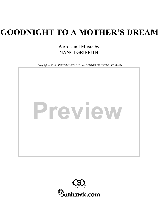 "Goodnight to a Mother's Dream" Sheet Music by Nanci Griffith