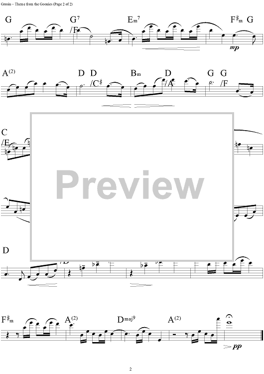 Digital Sheet Music for Goonies, Theme From The by Dave Grusin scored for Lead Sheet; id:267812