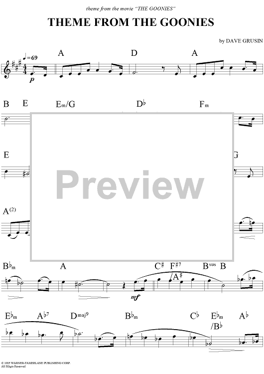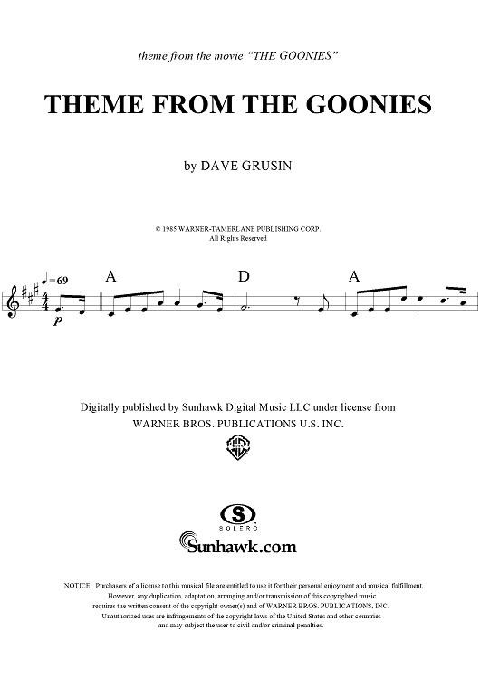 "Goonies, Theme From The" Sheet Music by Dave Grusin