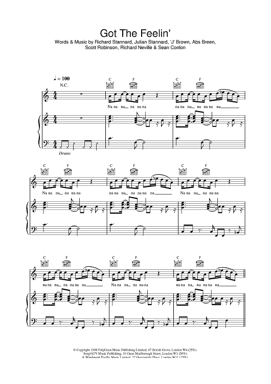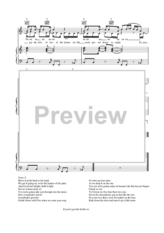 Digital Sheet Music for Got The Feelin by Five scored for Piano/Vocal/Chords; id:376679