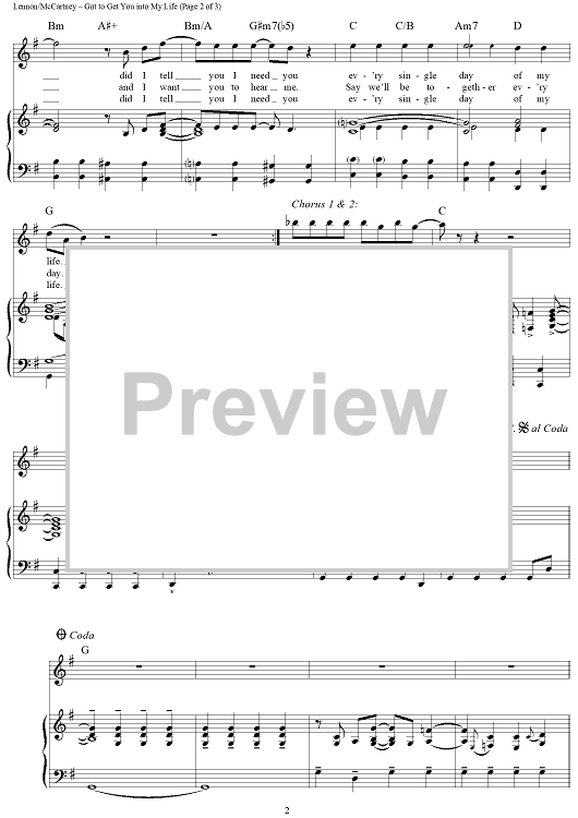 Digital Sheet Music for Got to Get You into My Life by Paul McCartney, The Beatles, John Lennon, Earth, Wind & Fire scored for Piano/Vocal/Chords; id:362111
