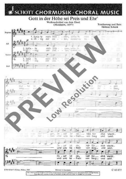 Digital Sheet Music for Gott in der Höhe sei Preis und Ehr' - Choral Score by Helmut Scheck scored for Mixed Choir (satb); id:479344