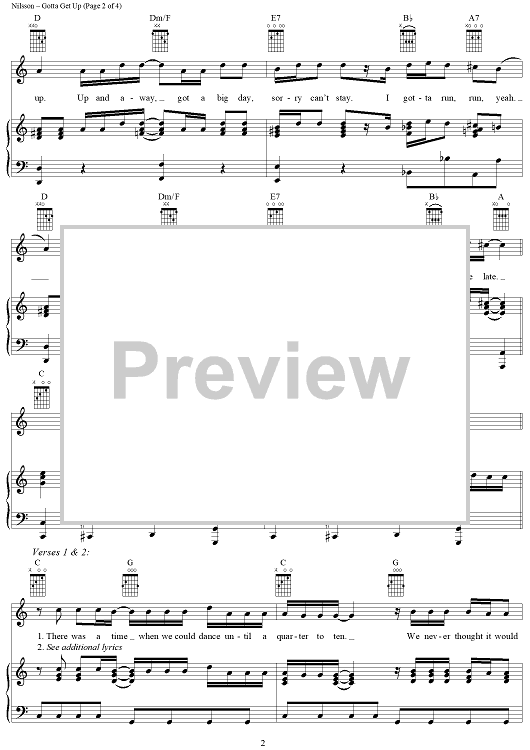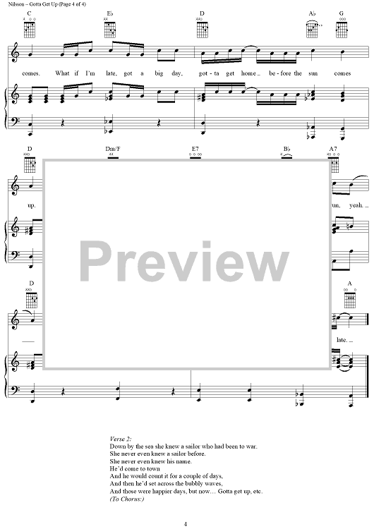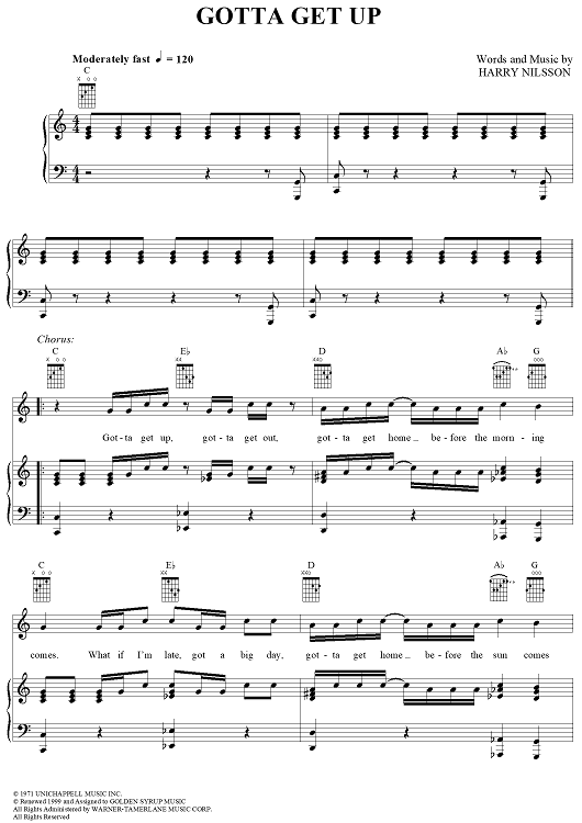 Digital Sheet Music for Gotta Get Up by Harry Nilsson, Nilsson scored for Piano/Vocal/Chords; id:253432