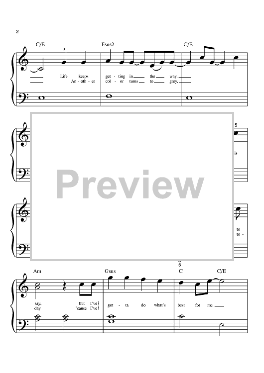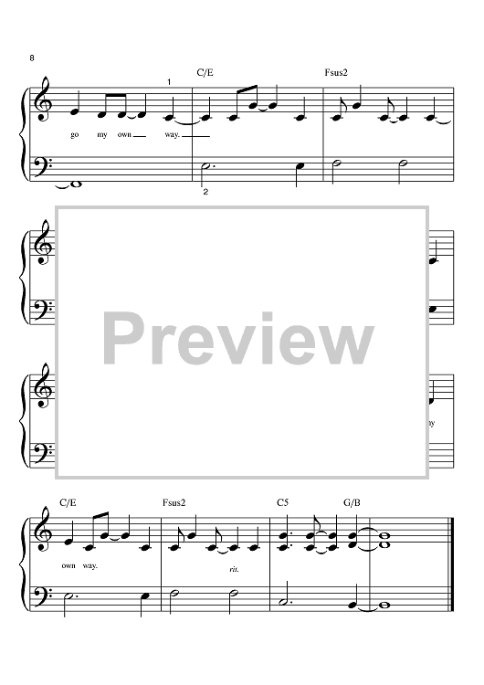 Digital Sheet Music for Gotta Go My Own Way by Adam Watts, Andy Dodd scored for Big Note Piano; id:398855