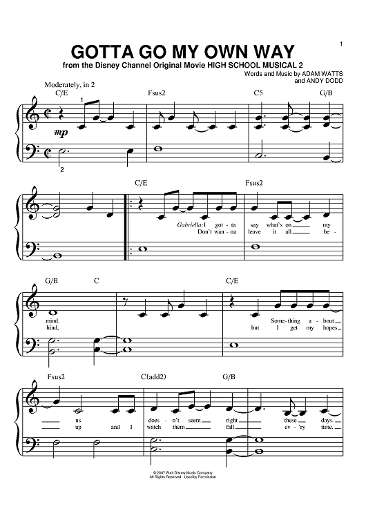 "Gotta Go My Own Way" Sheet Music by Adam Watts