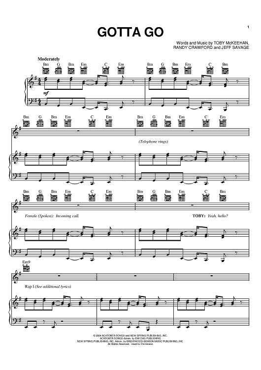 Digital Sheet Music for Gotta Go by tobyMac, Randy Crawford, Jeff Savage scored for Piano/Vocal/Chords; id:382017