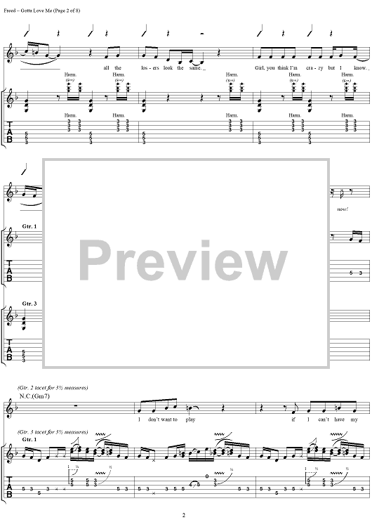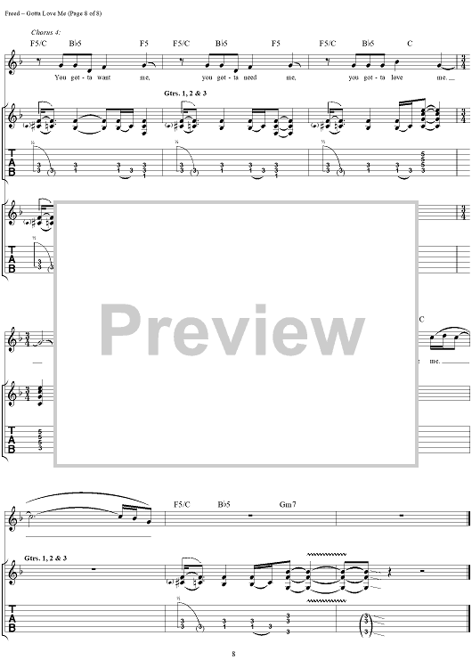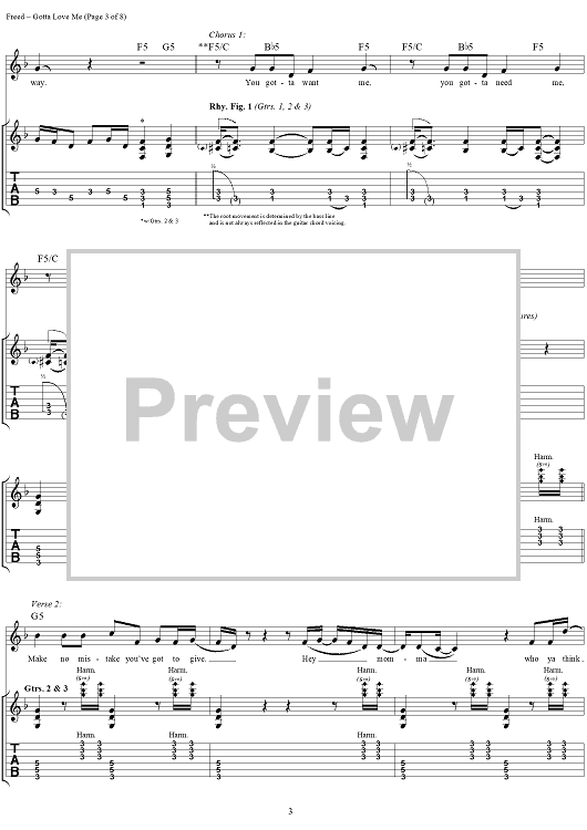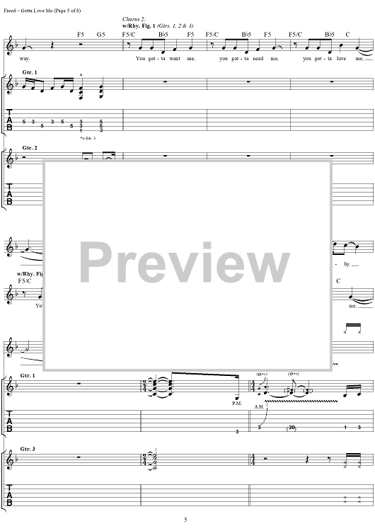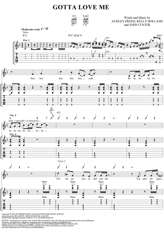 Digital Sheet Music for Gotta Love Me by Audley Freed, Kelly Holland, John Custer, Cry of Love scored for Guitar Tab/Vocal; id:269709