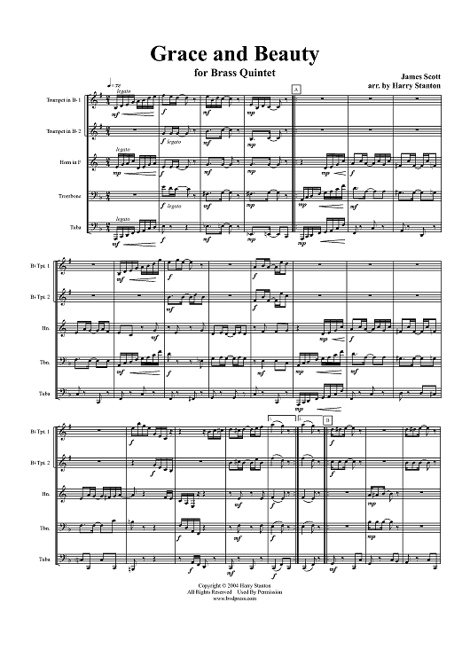 Digital Sheet Music for Grace and Beauty - Score by James Scott, Harry Stanton scored for Brass Quintet; id:312718
