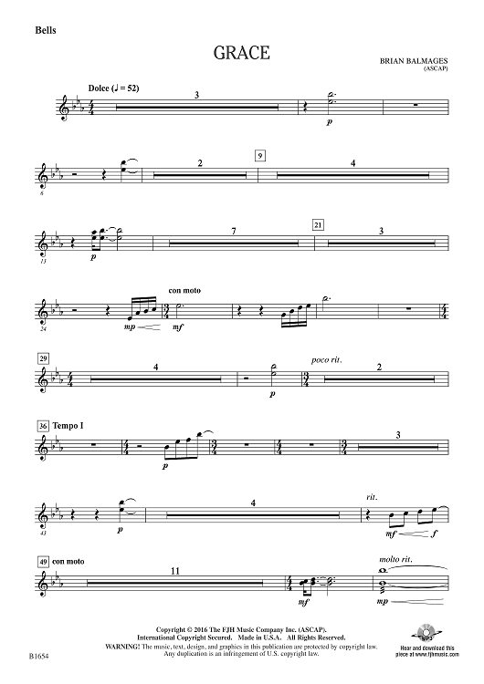 Digital Sheet Music for Grace - Bells by Brian Balmages scored for Concert Band; id:510185