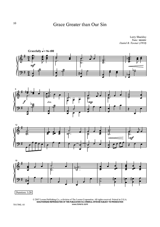 Digital Sheet Music for Grace Greater than Our Sin by Daniel B. Towner, Larry Shackley scored for Piano Solo; id:433689