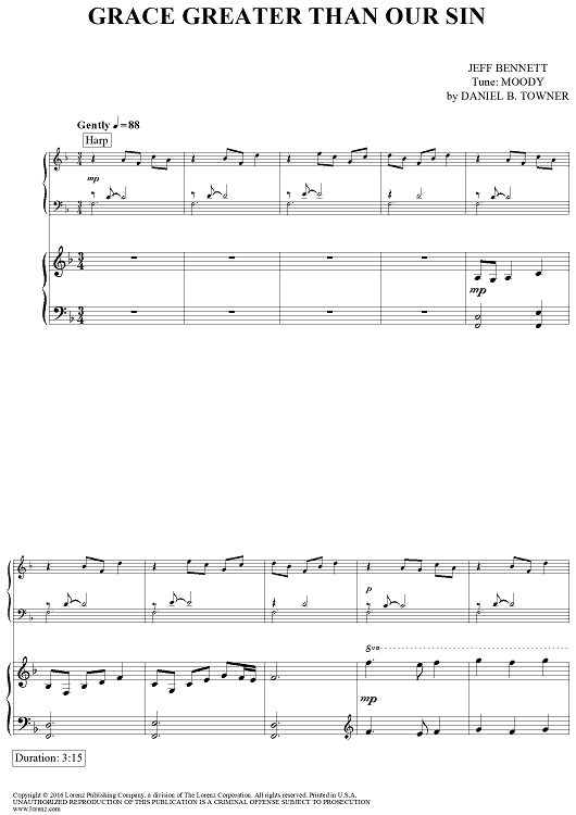 "Grace Greater than Our Sin" Sheet Music by Daniel B. Towner