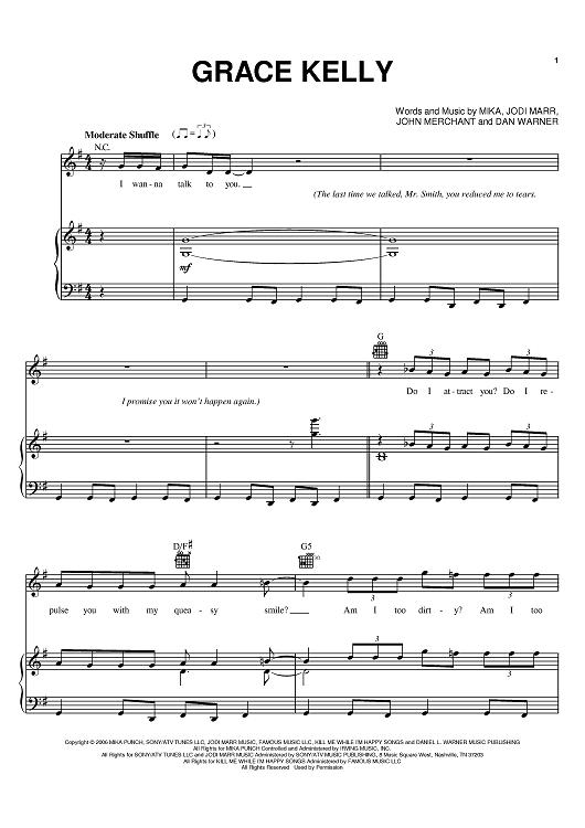 Digital Sheet Music for Grace Kelly by Mika, Jodi Marr, John Merchant, Dan Warner scored for Piano/Vocal/Chords; id:397638