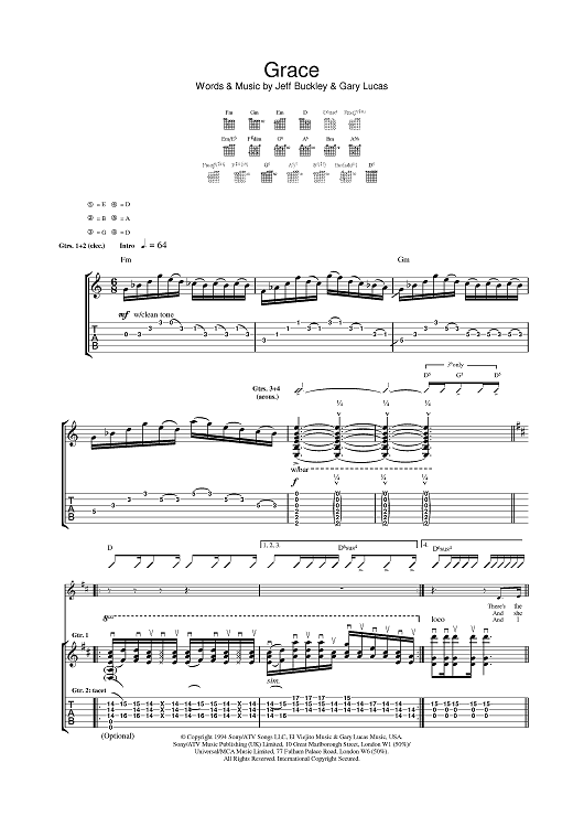 Digital Sheet Music for Grace by Jeff Buckley, Gary Lucas scored for Guitar Tab; id:376962