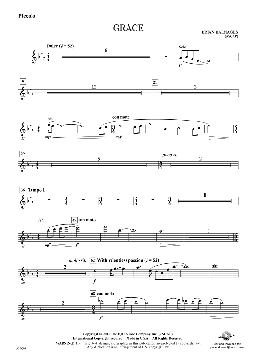 "Grace - Piccolo" Sheet Music by Brian Balmages