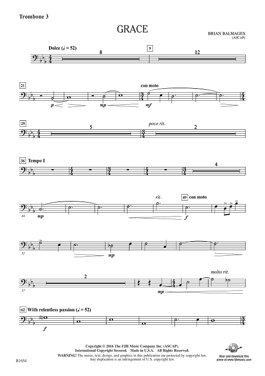 Digital Sheet Music for Grace - Trombone 3 by Brian Balmages scored for Concert Band; id:510179