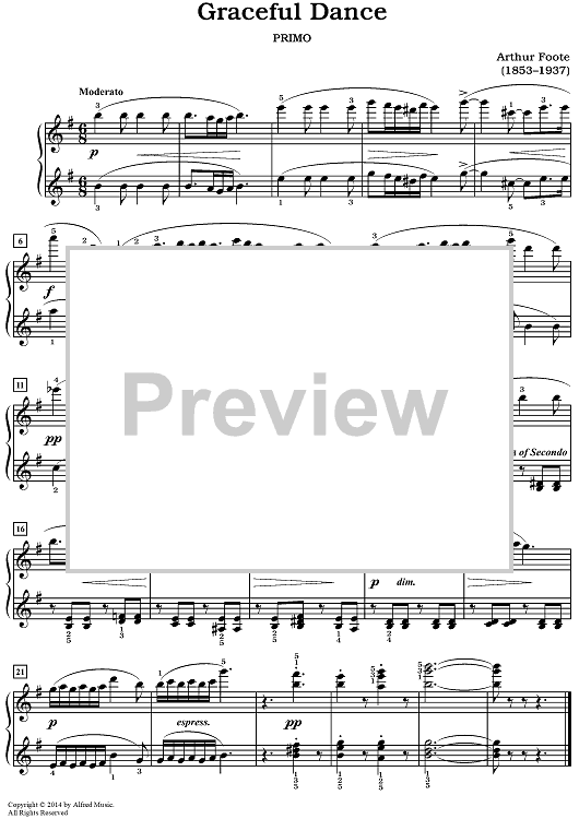 Digital Sheet Music for Graceful Dance by Arthur Foote scored for 1 Piano, 4 Hands; id:503057