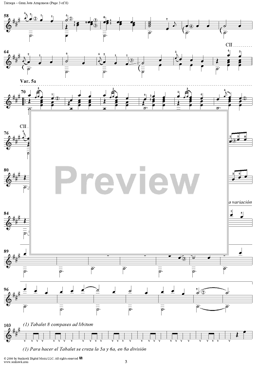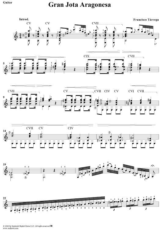 "Gran Jota Aragonesa" Sheet Music by F. Tarrega