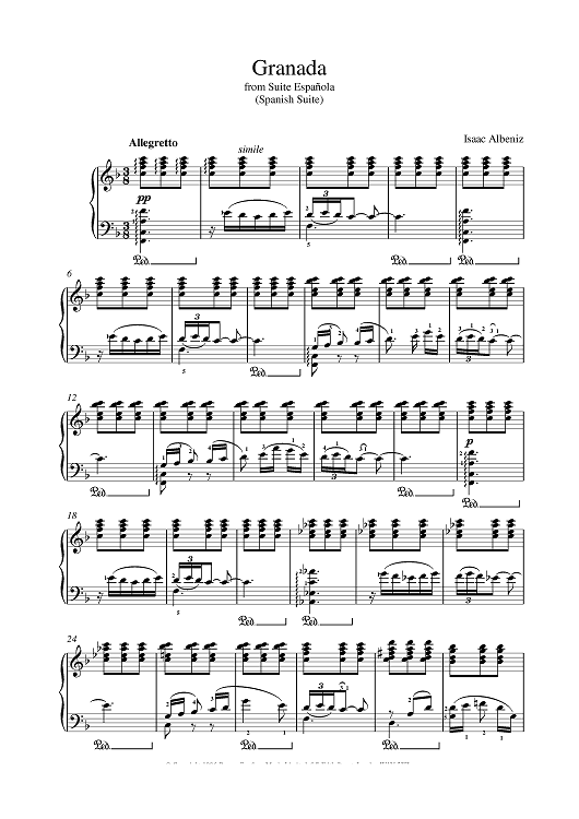 Digital Sheet Music for Granada From Suite Espanola by Isaac Albéniz scored for Piano; id:385829