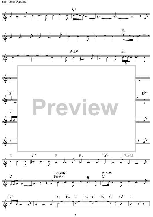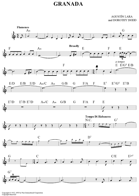 Digital Sheet Music for Granada by Agustin Lara, Dorothy Dodd scored for Lead Sheet; id:449001