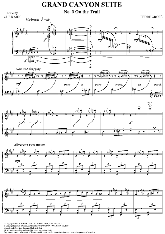 "Grand Canyon Suite - No. 3 On the Trail" Sheet Music by Ferde Grofé