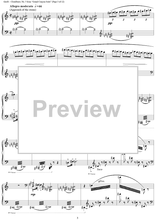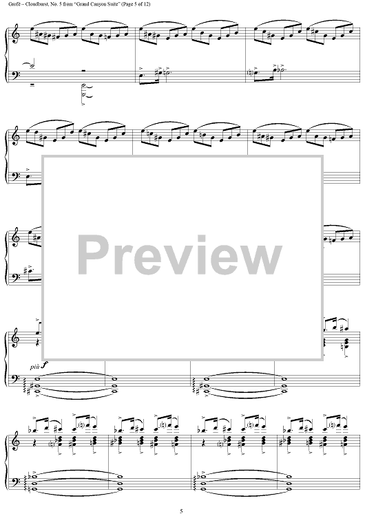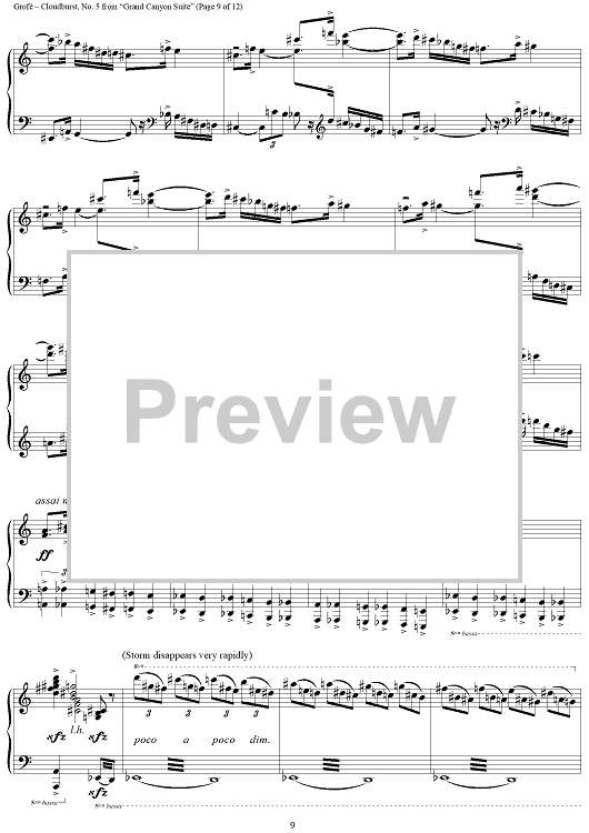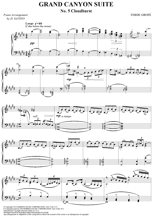 Digital Sheet Music for Grand Canyon Suite - No. 5 Cloudburst by D. Savino, Ferde Grofé scored for Piano Solo; id:365011