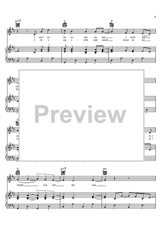 Digital Sheet Music for Grand Central Station by Mary Chapin Carpenter scored for Piano/Vocal/Chords; id:379311