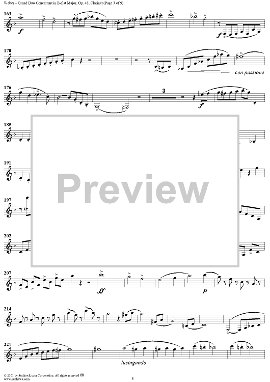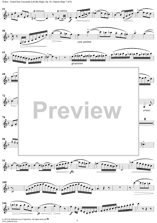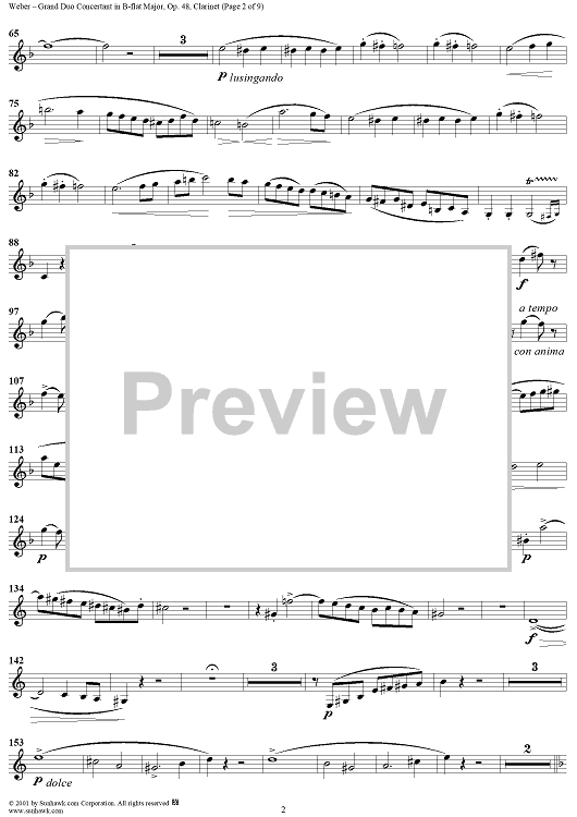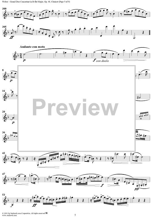 Digital Sheet Music for Grand Duo Concertant in B-flat Major, Op. 48 - Clarinet by Carl Maria Von Weber scored for Clarinet/Piano; id:264308