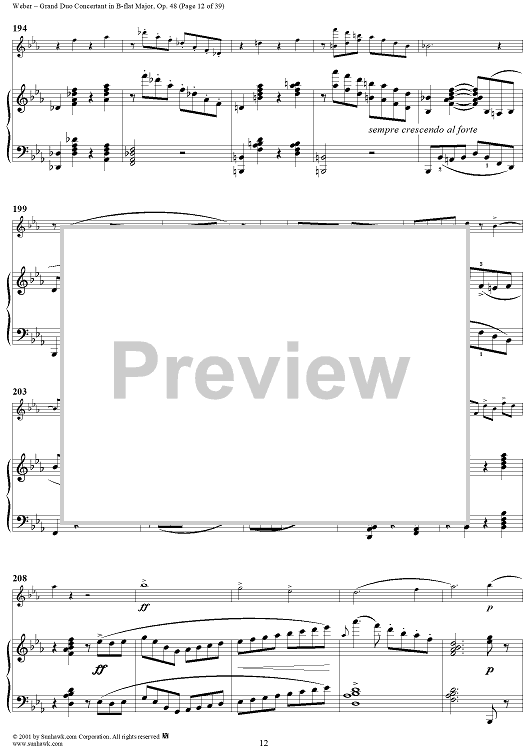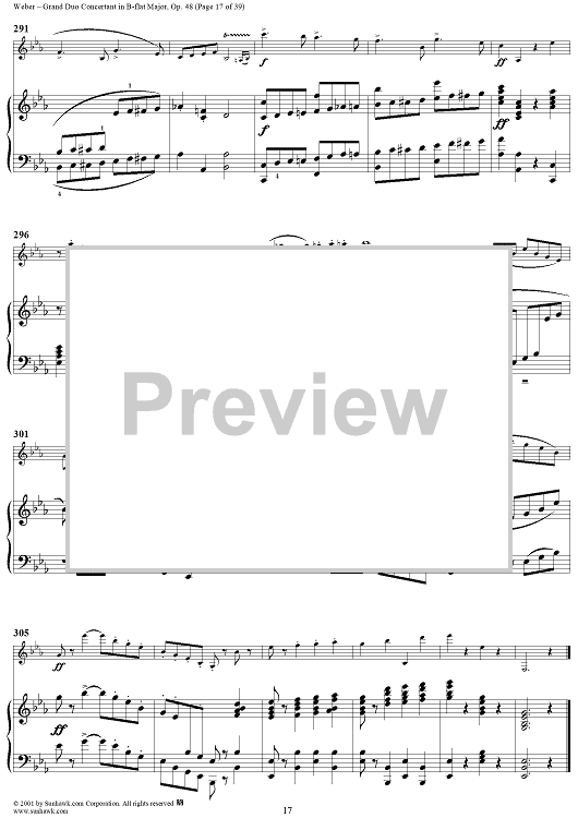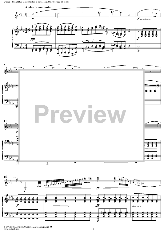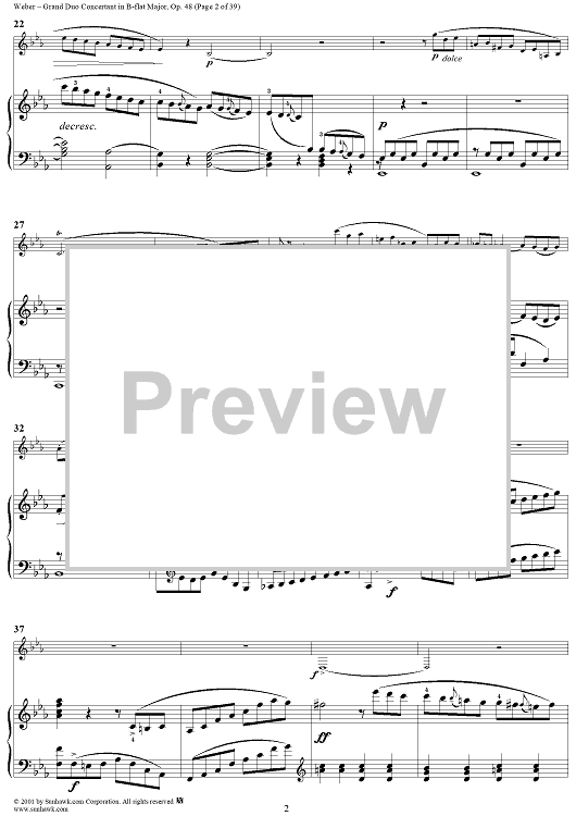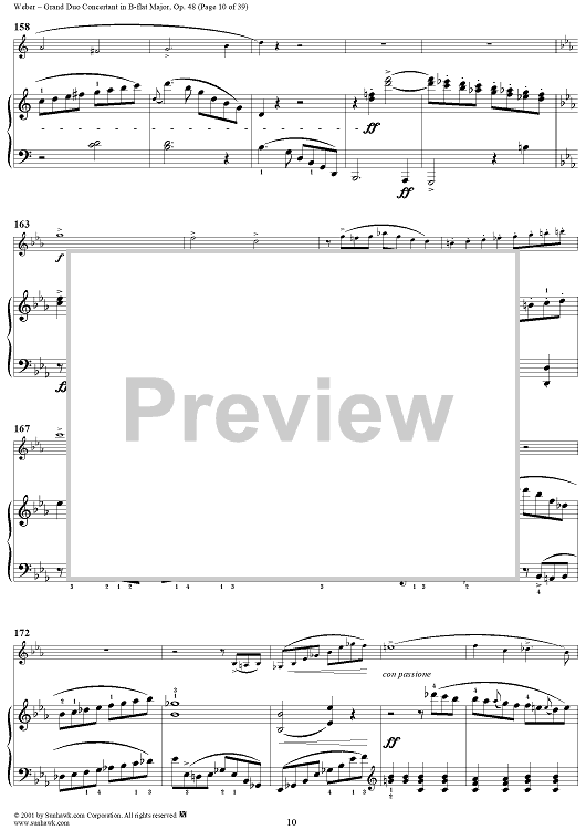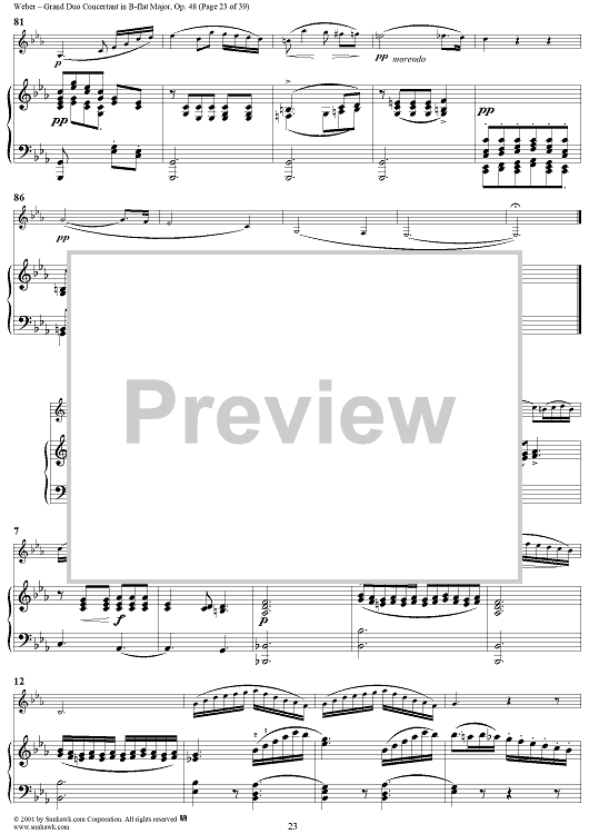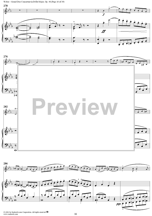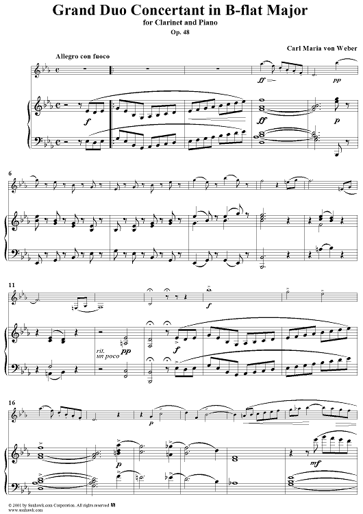 Digital Sheet Music for Grand Duo Concertant in B-flat Major, Op. 48 - Piano Score by Carl Maria Von Weber scored for Clarinet/Piano; id:264307