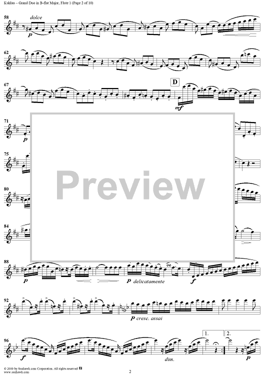 "Grand Duo in B-Flat Major, Op. 39, No. 2 - Flute 1" Sheet Music by Friedrich Kuhlau