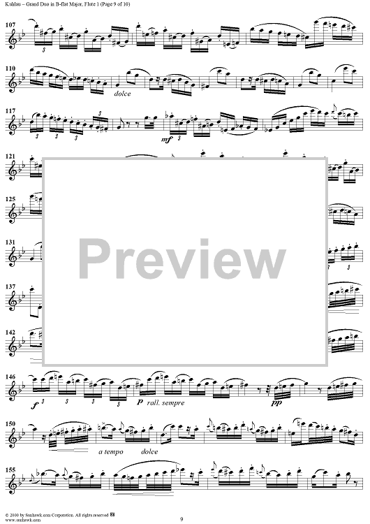 Digital Sheet Music for Grand Duo in B-Flat Major, Op. 39, No. 2 - Flute 1 by Friedrich Kuhlau scored for Two Flutes; id:235515